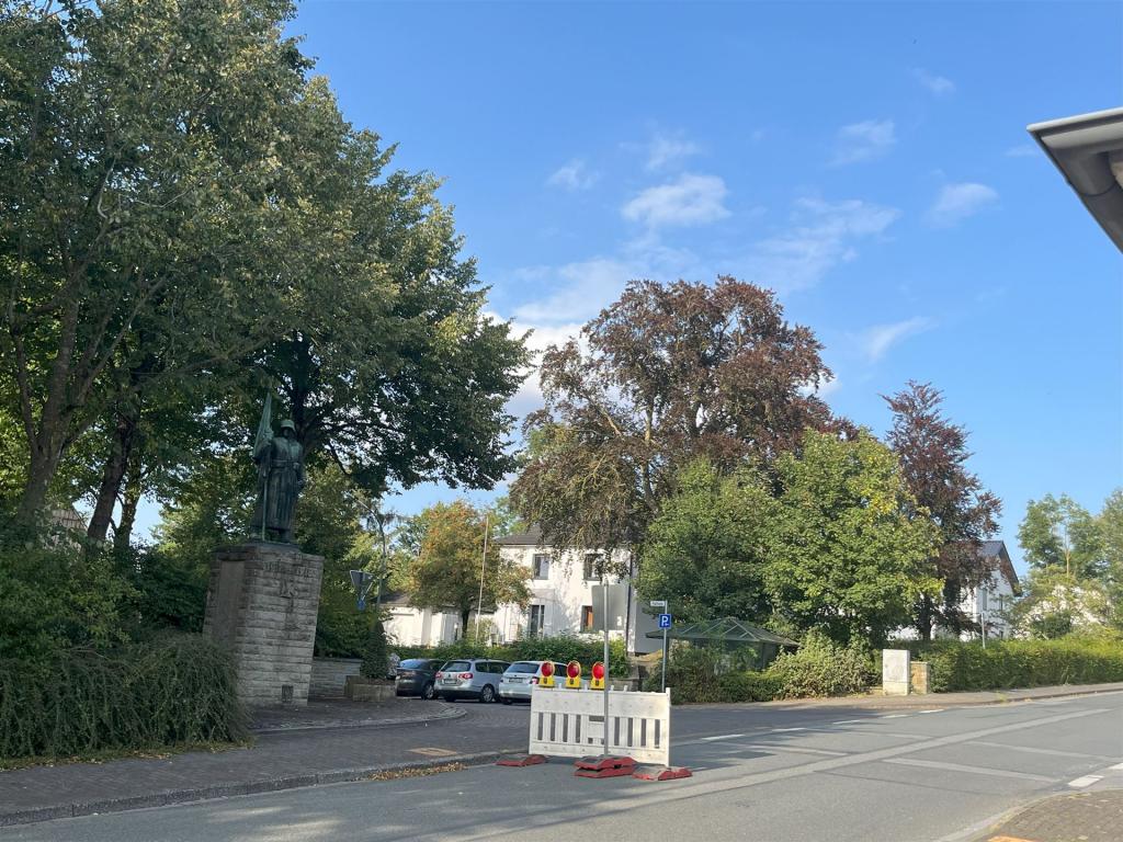 Die Kreuzung Plaßkamp/Kallenhardter Straße mit Blick auf das alte Pastorat in dessen Garten der Bau vom neuen Pfarrhaus entsteht. Nach der Fertigstellung des Neubaus wurde das Pastorat abgerissen.